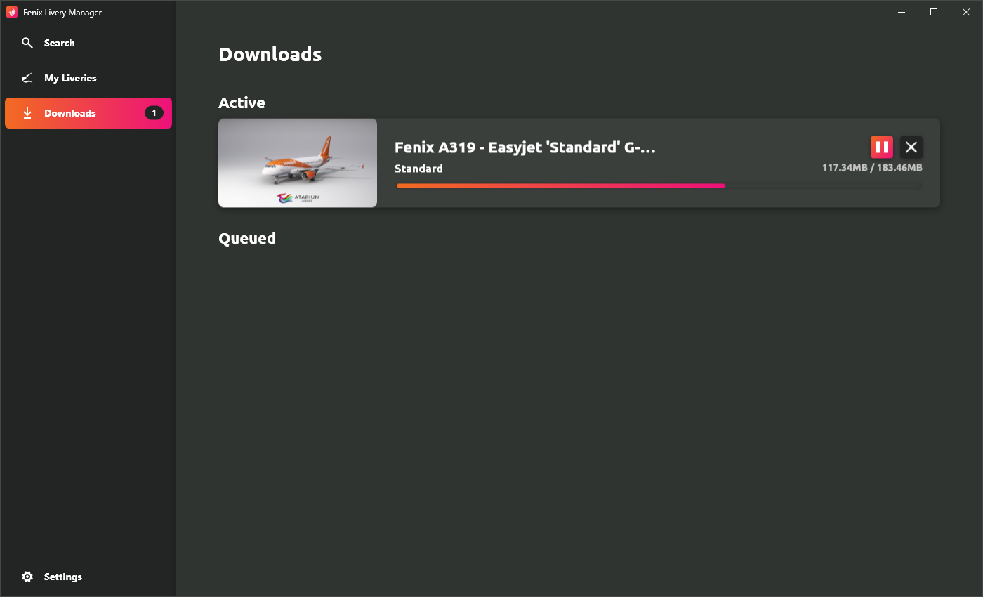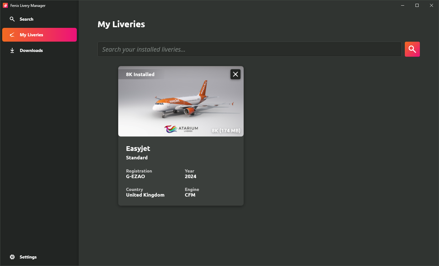 In aviation, a livery refers to the paint job on the aircraft’s exterior. The purpose of Fenix Livery Manager is to allow users to search for, download, install and uninstall aircraft liveries for the A320, so that users can fly for whichever airline/company they want inside the simulation.